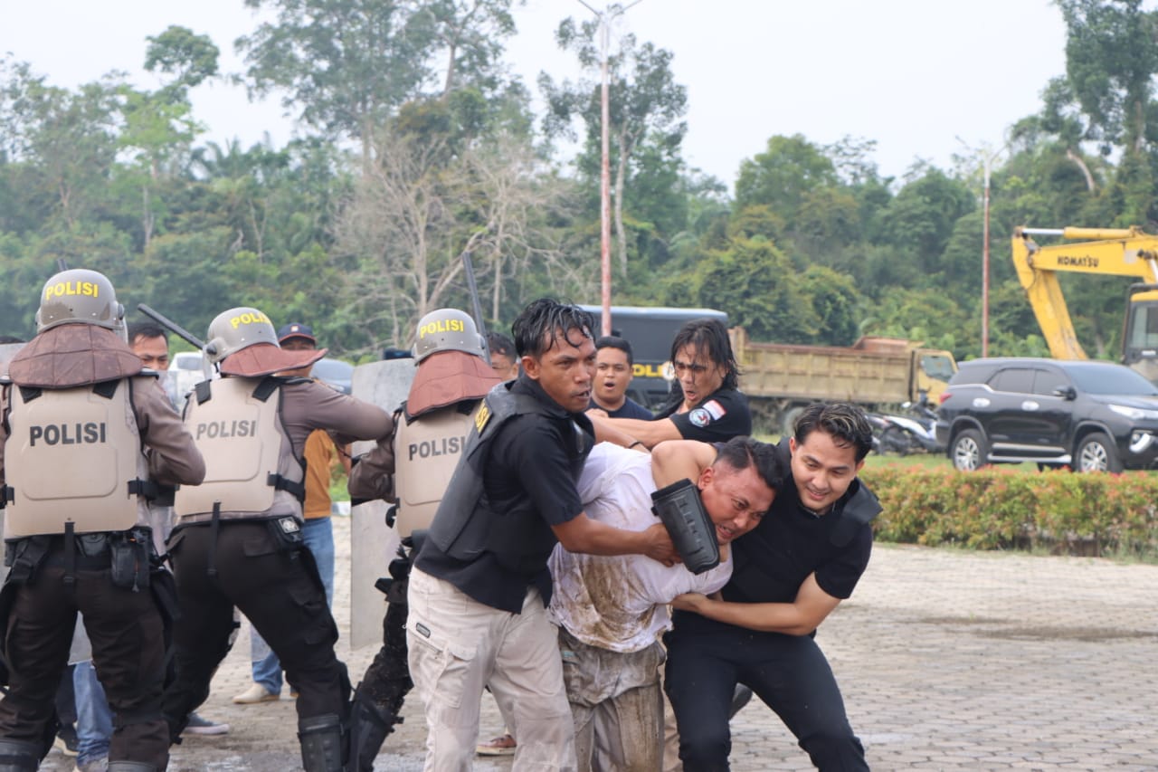 Demikian salah satu rangkaian simulasi Sistem Pengamanan Kota (Sispammako) dalam pengamanan Pemilu Tahun 2024 di Polres Rohul, pada Selasa (17/10/2023).
