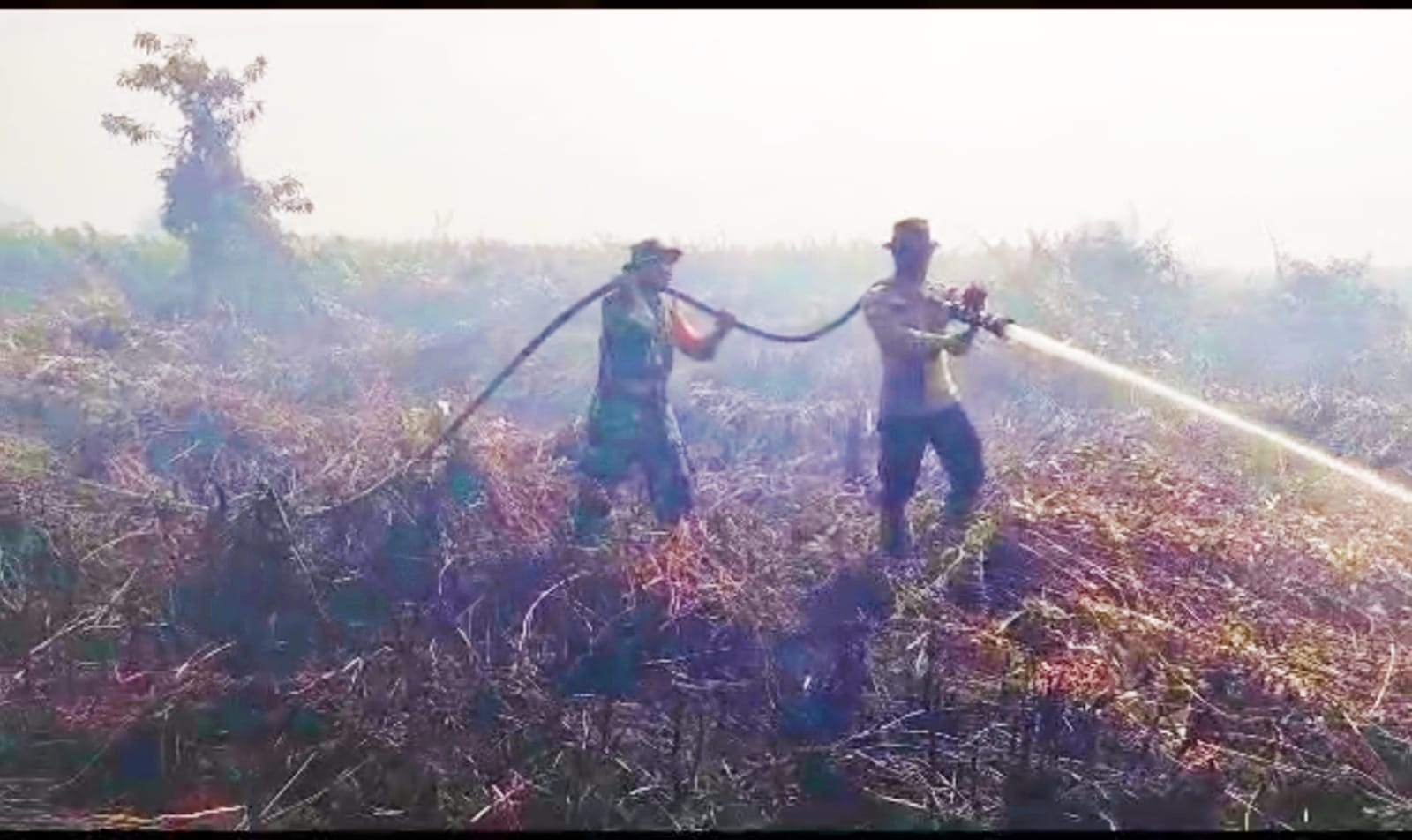 Ia menyampaikan, kawasan yang terbakar merupakan hutan gambut semak belukar. Jadi api menjalar di bawah permukaan tanah.