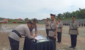 Rokan Hulu – Kapolres Rokan Hulu AKBP Pangucap Soegito SIK melakukan penandatanganan sekaligus pelatakan batu pertama, Musholla As-Salam Polsek Tambusai, Rokan Hulu, Riau, pada Jumat (7/10/2022).