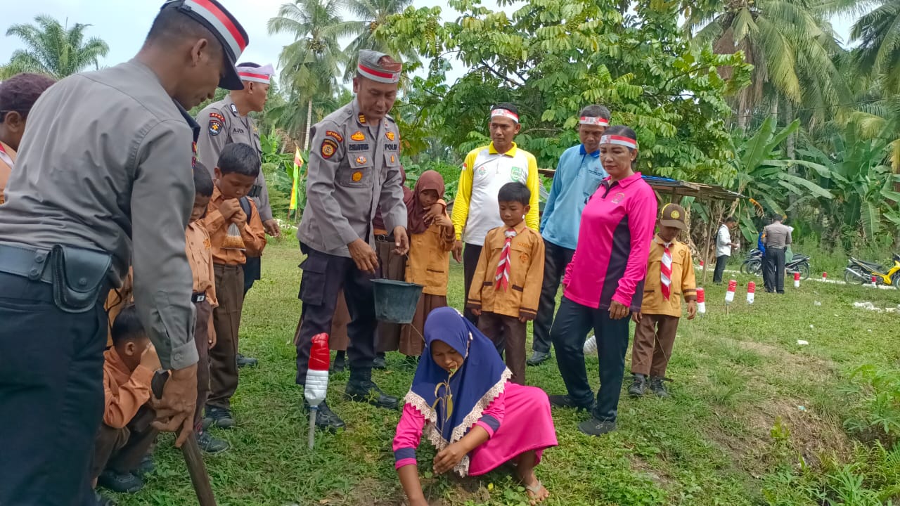 Penanaman pohon tersebut dilakuakan secara serentak dalam rangka Peringatan HUT RI ke-78 tahun dan ‘Melestarikan Lingkungan Sejak Dini’ yang ditaja oleh Polri.