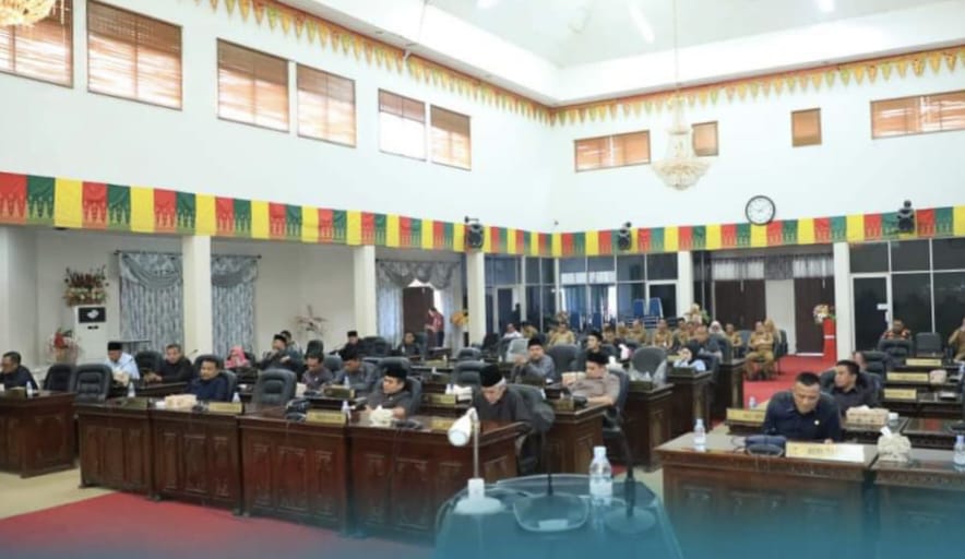 Rapat paripurna itu dipimpin oleh Ketua DPRD Rohul, Novliwanda Ade Putra ST didampingi Wakil Ketua, Nono Patria Pratama dan dihadiri 27 anggota DPRD Rohul dan Kepala OPD di Lingkungan Pemerintah Kabupaten Rokan Hulu.