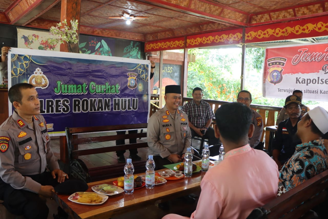 Kapolres Rokan Hulu AKBP Budi Setiyono mendengarkan unek-unek warga saat acara Jumat Curhat. Foto Mengabarkan.com